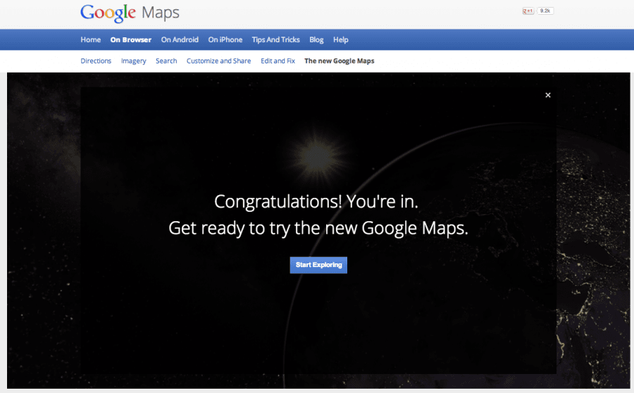 Un giorno dopo il Google I/O (15 maggio) abbiamo ricevuto l’invito per provare il nuovo Google Maps. Basta infatti recarsi sulla pagina di presentazione della nuova versione. Innanzitutto viene consigliato di usare un browser che supporti il WebGL e dunque ci viene sconsigliato Safari (che non lo supporta). Così decidiamo di usare Google Chrome (la prova è stata effettuata su Mac). EDIT: è possibile abilitare OpenGL anche su Safari! (Safari > Preferenze > Avanzate > Mostra menu Sviluppo nella narra dei menu; Sviluppo > Abilita WebGL)
